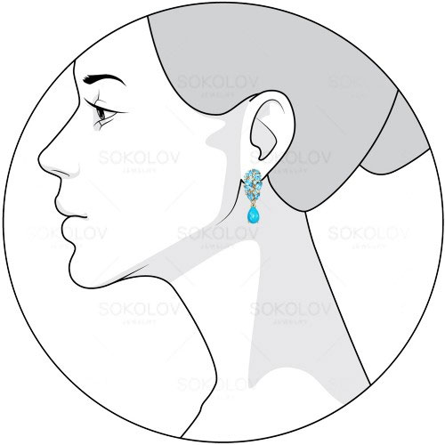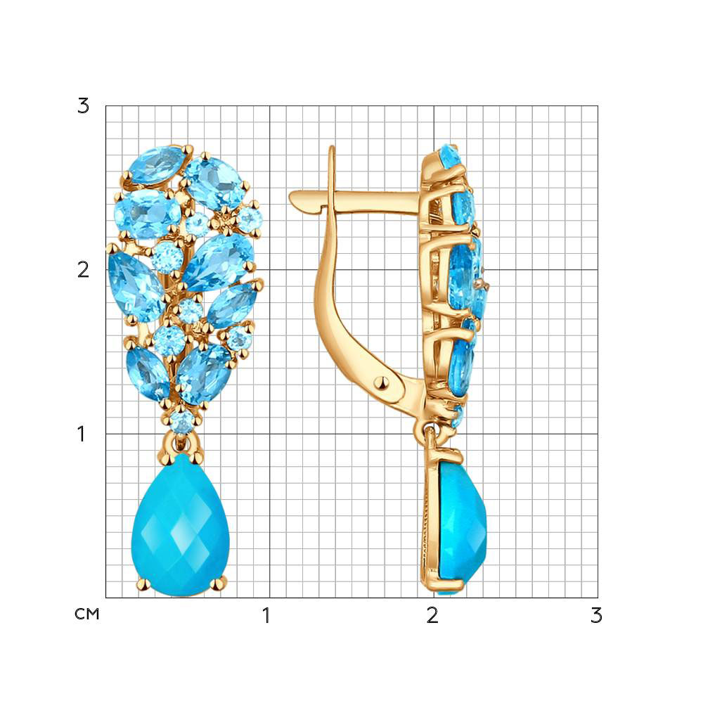 Золотые серьги с подвесками SOKOLOV 724318 с бирюзой, топазами