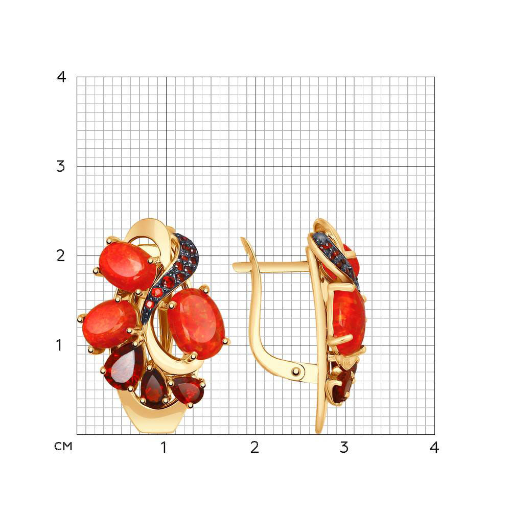 Золотые серьги SOKOLOV 725068 с гранатами, фианитами, опалами