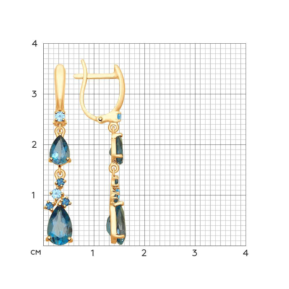 Золотые длинные серьги с подвесками SOKOLOV 725339 с топазами, Лондон топазами