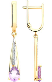 Фото «Золотые серьги с подвесками SOKOLOV 725972 с аметистами, фианитами»