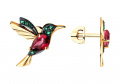 Фото «Золотые серьги пусеты-гвоздики ''Колибри'' SOKOLOV 727081 с родолитами, фианитами»