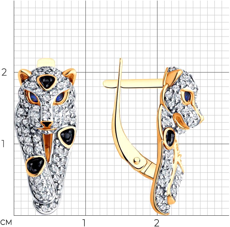 Фото «Золотые серьги SOKOLOV 728589 со шпинелью, искусственными корундами, фианитами»