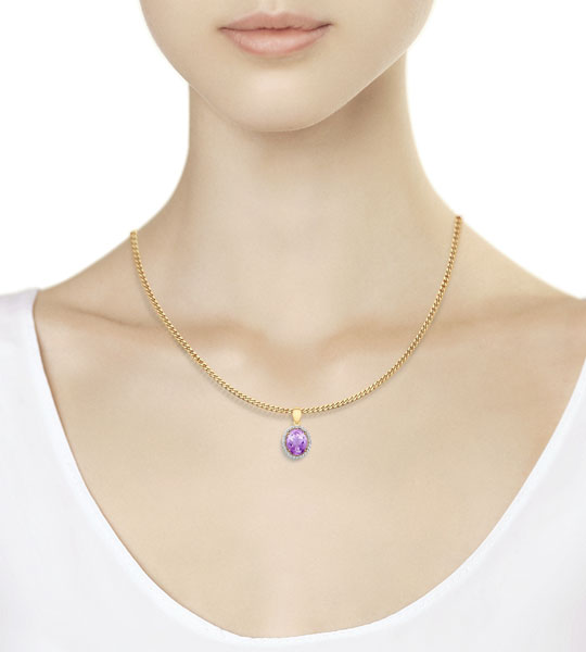 Фото «Золотой кулон SOKOLOV 731665 с аметистом, фианитами»