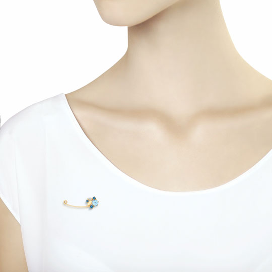 Фото «Золотая брошь SOKOLOV 740189 с топазами, фианитом»