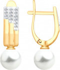 Золотые серьги шарики SOKOLOV 792144 с жемчугом, фианитами