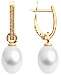 Золотые серьги с подвесками Sokolov 792412_s с жемчугом, фианитами
