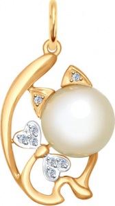 Золотой кулон SOKOLOV 793010_s c жемчугом, фианитом