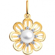 Золотая подвеска SOKOLOV 793087 с жемчугом, фианитами