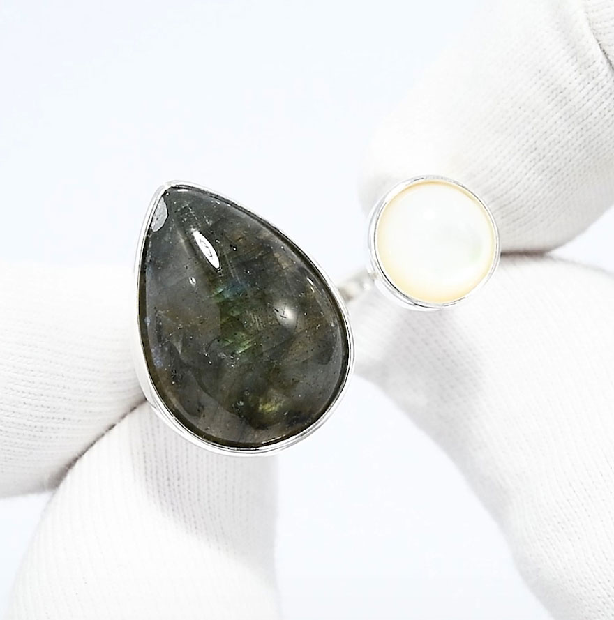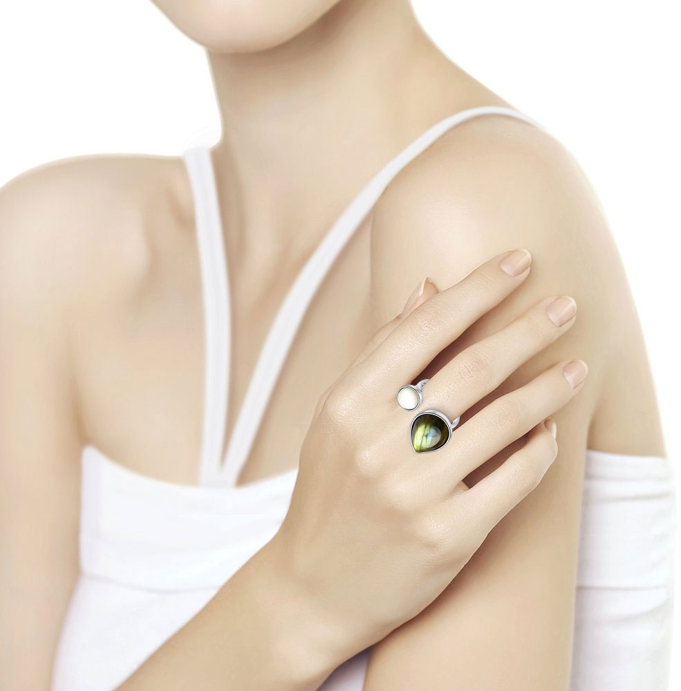 Фото «Серебряное кольцо SOKOLOV 83010074 с лабрадоритом и перламутром»