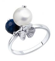 Фото «Серебряное кольцо с подвесками SOKOLOV 83010092 с содалитом и жемчугом Swarovski»