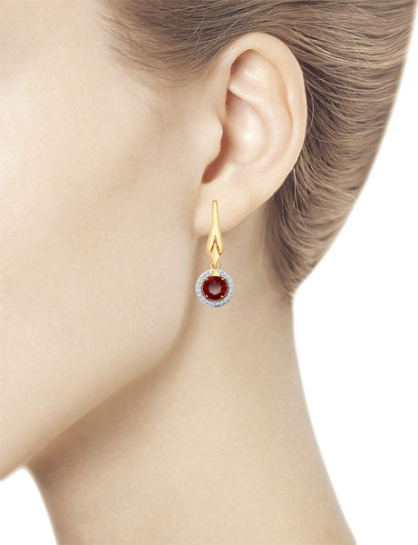 Фото «Серебряные серьги круглые SOKOLOV 92021612 с гранатами, фианитами»
