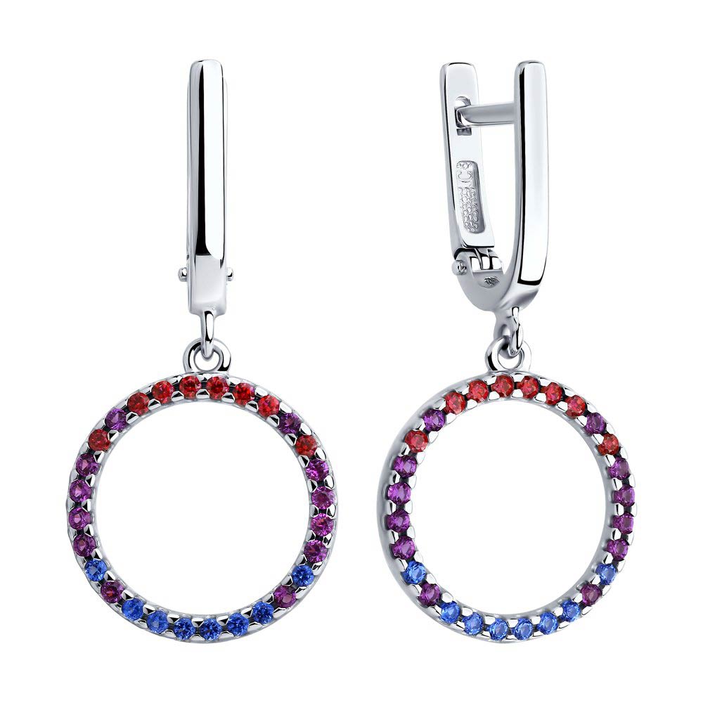 Серебряные серьги круглые с подвесками SOKOLOV 94023406 с фианитами