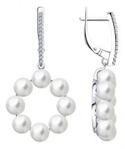Серебряные серьги круглые с подвесками SOKOLOV 94023994 с жемчугом, фианитами