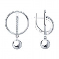 Серебряные серьги круглые с подвесками SOKOLOV 94024037 с фианитами