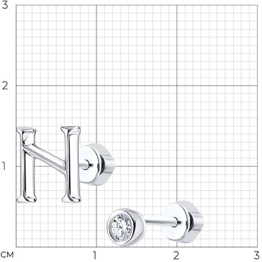 Фото «Серебряные серьги пусеты-гвоздики ''Буква N'' SOKOLOV 94024375 с фианитами»