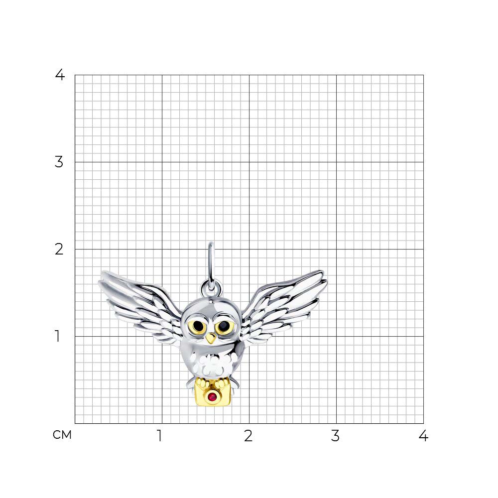Серебряный кулон ''Сова Букля'' SOKOLOV 94033187 с искусственным корундом, фианитами