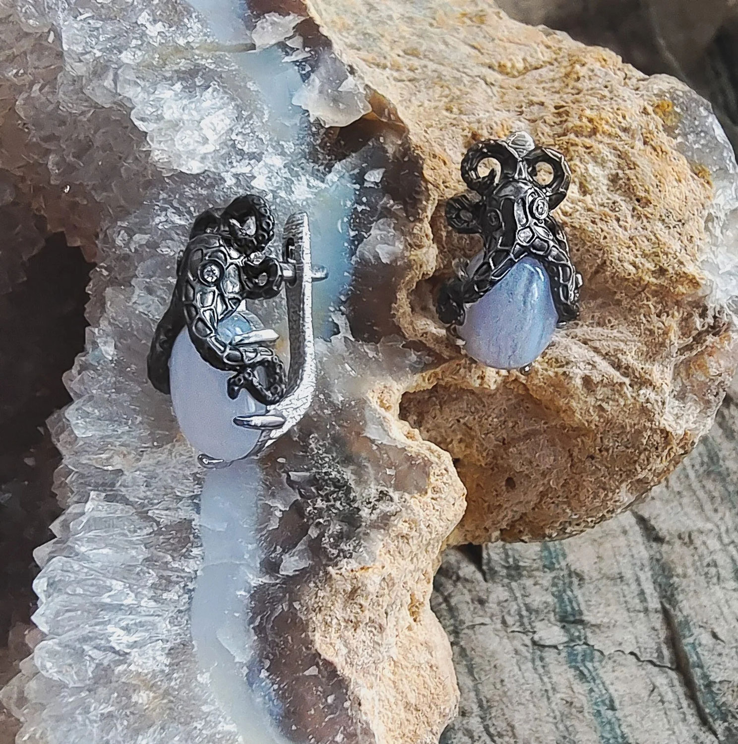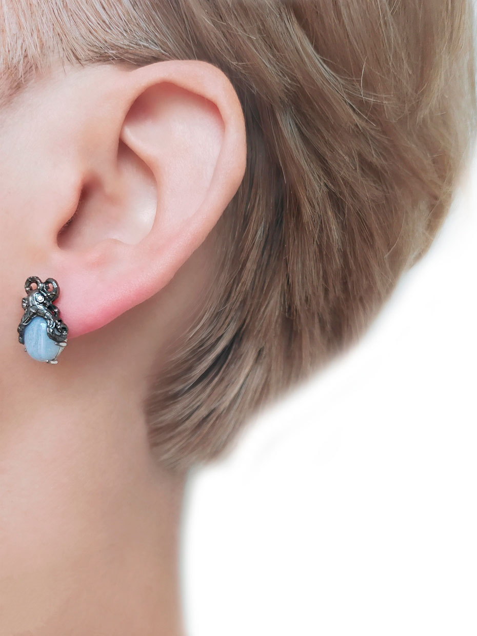 Фото «Серебряные серьги ''Осьминог'' Spika Gold 20094-130-10 с голубым агатом, фианитами»