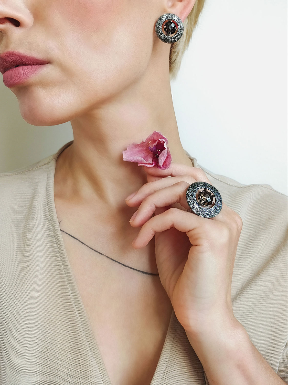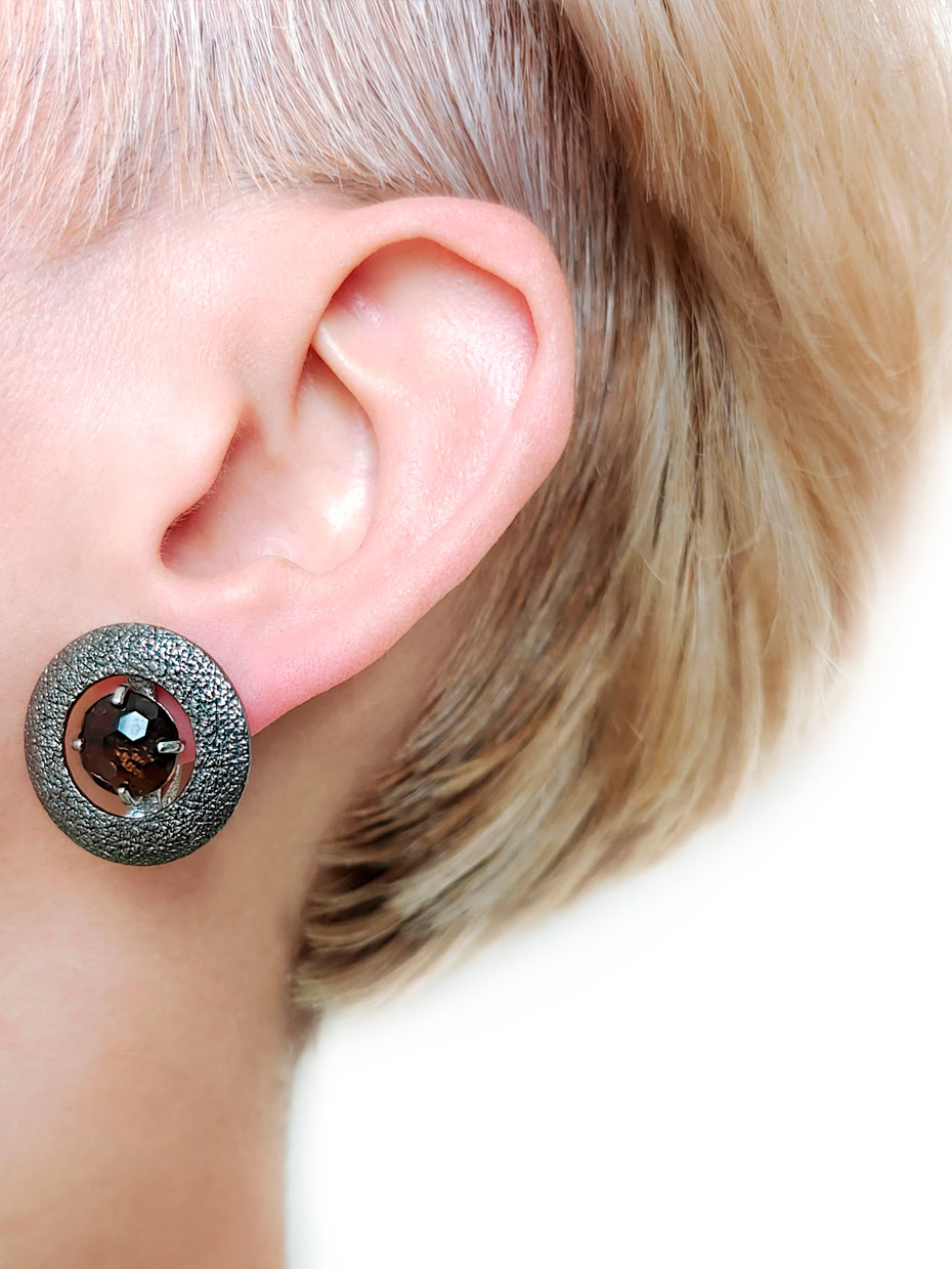 Фото «Серебряные серьги круглые Spika Gold 20118-065-10 с дымчатым кварцем»