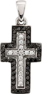 Фото «Женский декоративный крестик из белого золота Spika Gold 3239-025-01 с черными бриллиантами, бриллиантами»