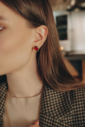 Фото «Серебряные серьги пусеты-гвоздики Sun Stone E9171ZK с янтарем»