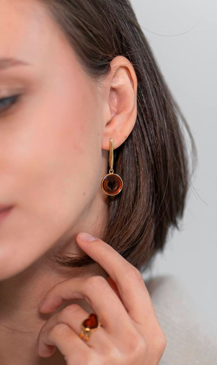 Фото «Серебряные серьги круглые с подвесками Sun Stone E9229ZK с янтарем»