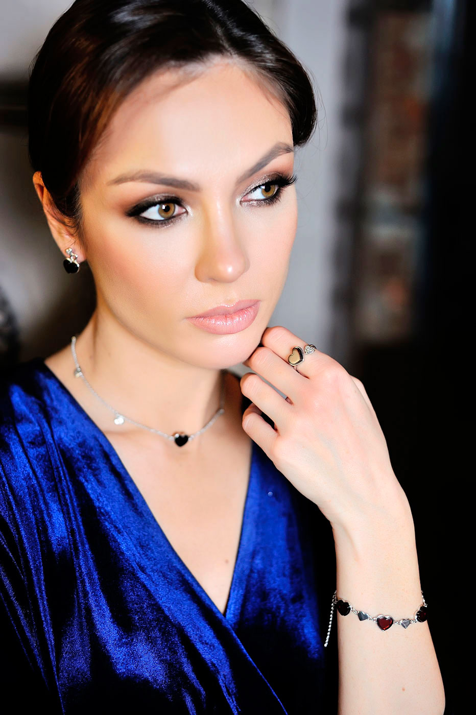 Фото «Серебряный чокер с подвесками Sun Stone N9209RV с янтарем»