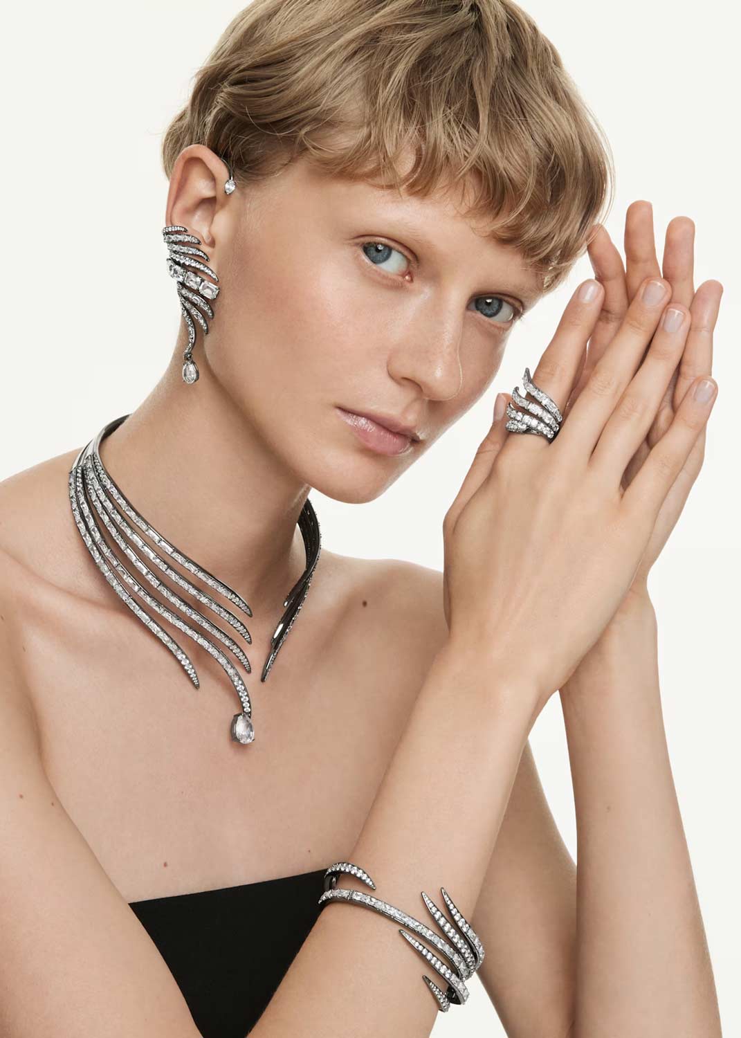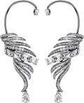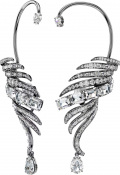 Серьги-каффы, напоминающие крылья лебедя, украшены прозрачными кристаллами разной огранки и дополнены рутениевым покрытием. Дополнительная застежка - клипса.
