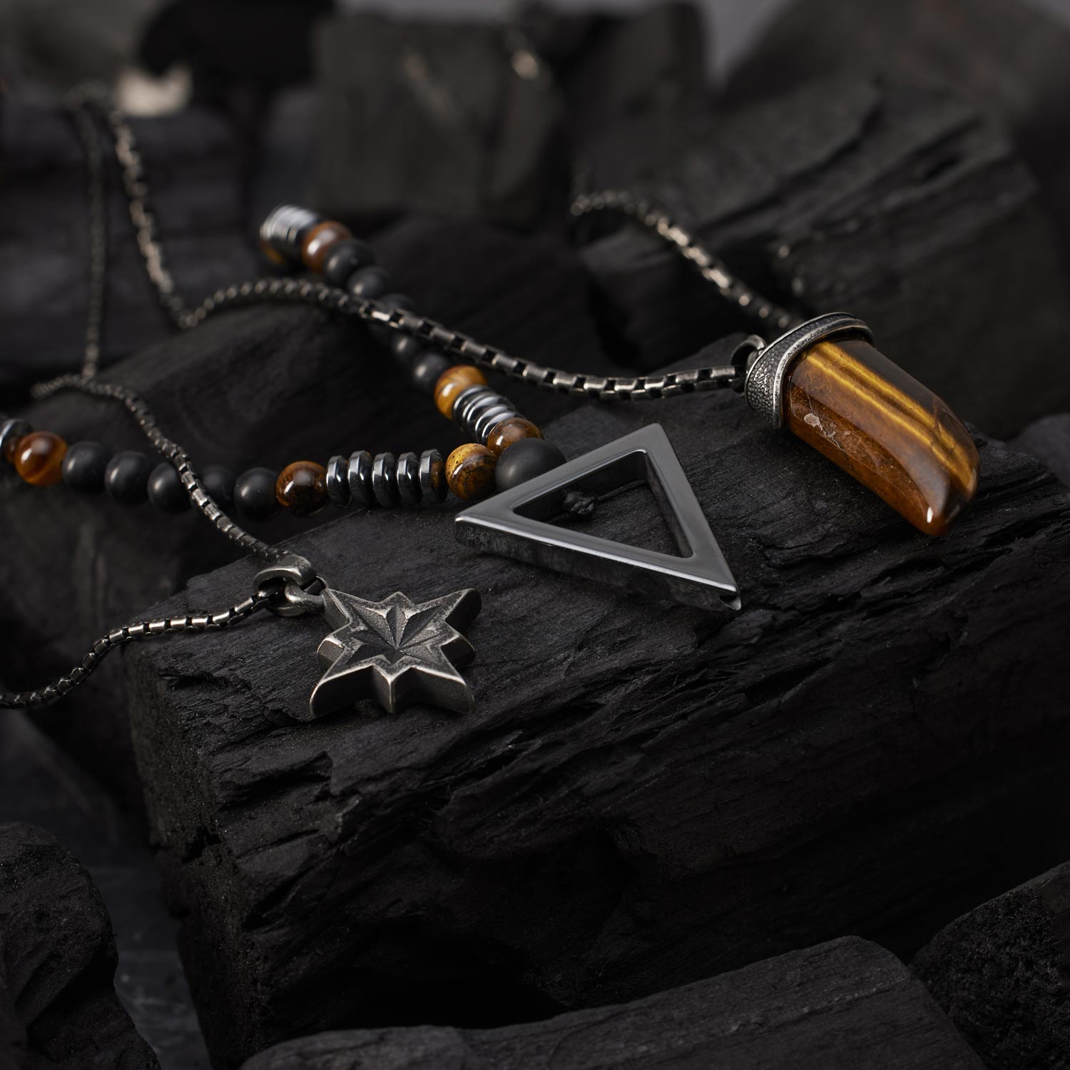 Фото «Мужские бусы с подвеской TecArt SBN041 с ониксами, тигровым глазом»
