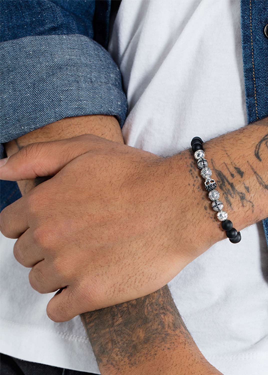 Фото «Мужской браслет из бусин ''Череп'' Thomas Sabo A1099-159-11 с обсидианом, фианитами»