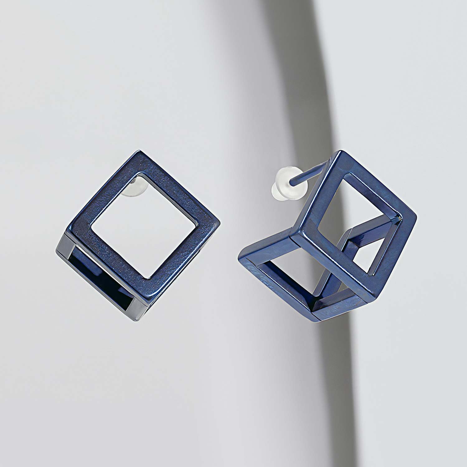 Фото «Титановые серьги пусеты-гвоздики ''Воздушный куб'' Titanist TS-E0165»