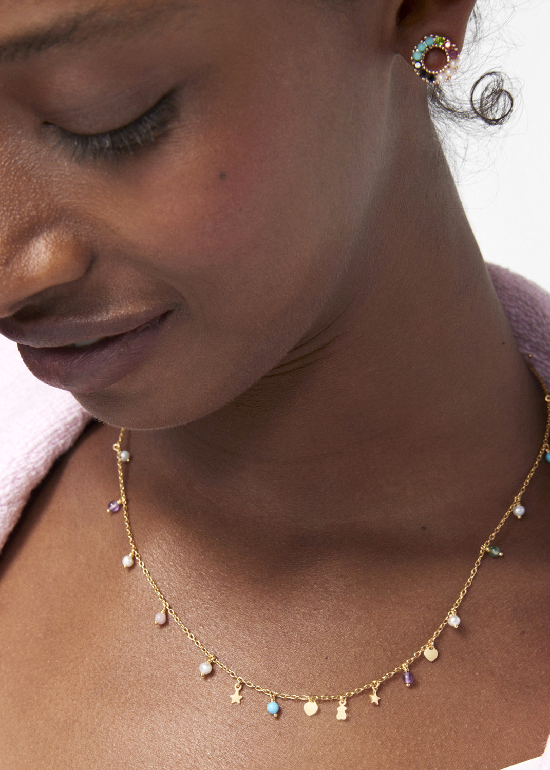 Фото «Колье из серебра (вермель) TOUS Cool Joy 018152520 с жемчугом, аметистами, авантюрином, родохрозитом, магнезитом»