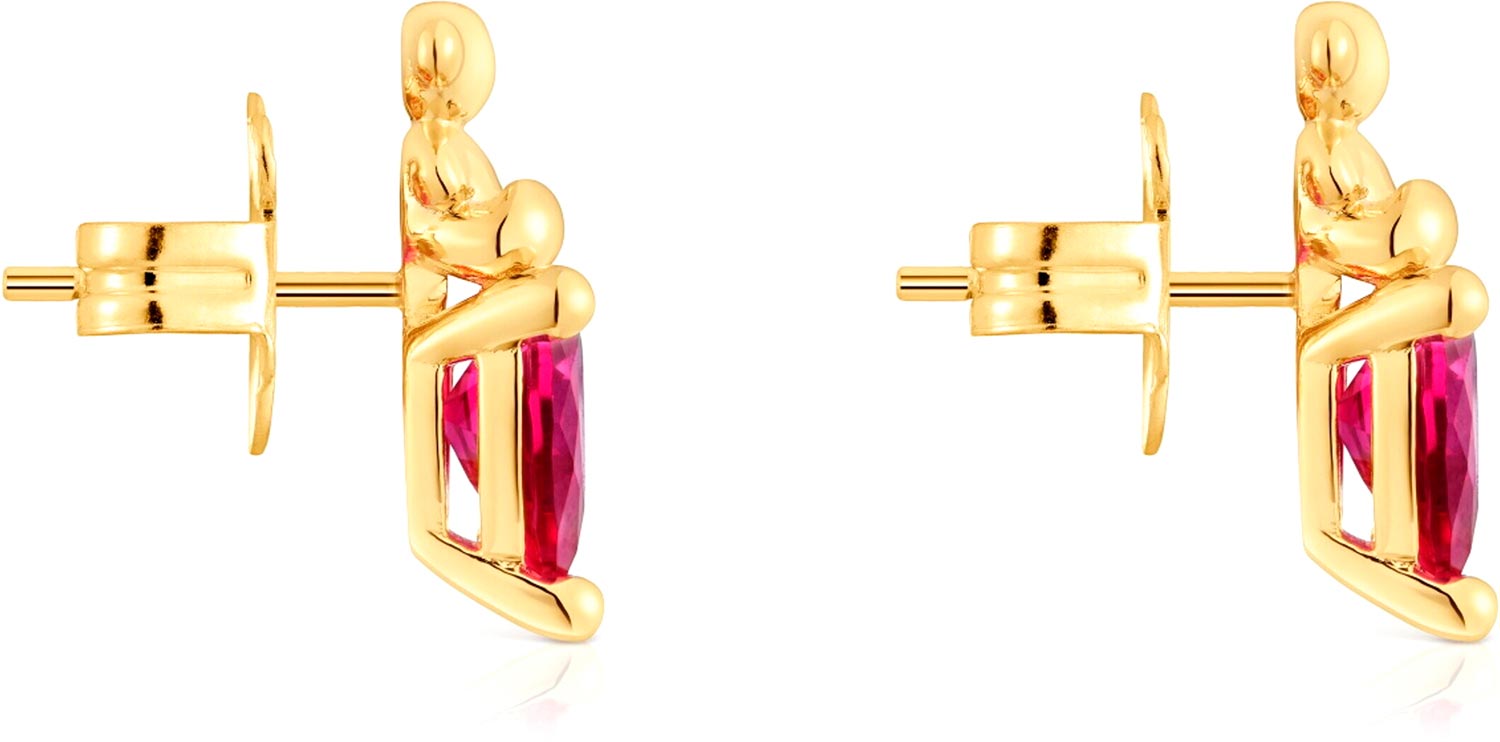 Фото «Серьги пусеты-гвоздики из вермеля TOUS Bold Bear 1004339100 с искусственным рубином»