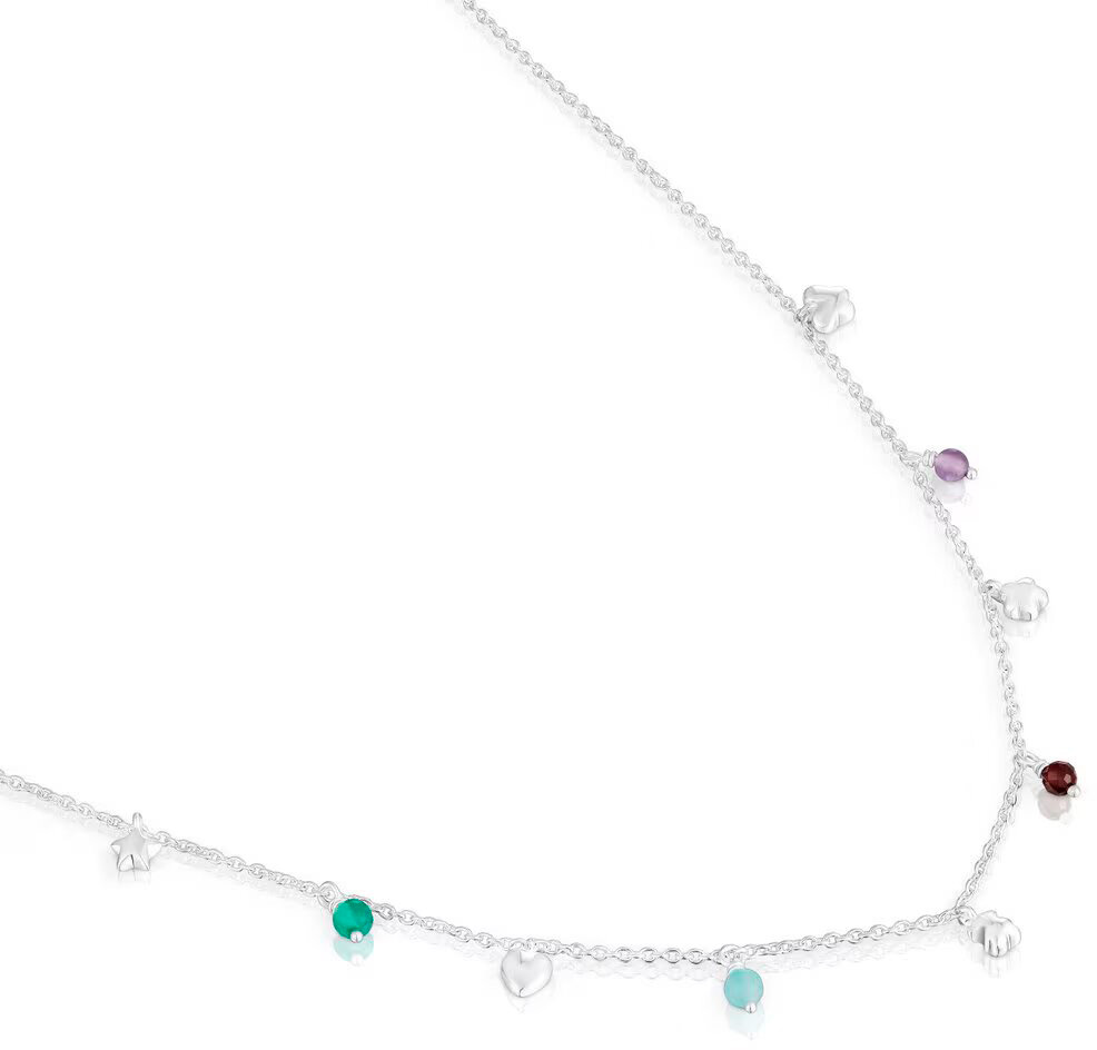 Колье из серебра TOUS Motif 311652510 с аметистом, амазонитом, халцедоном, родолитом