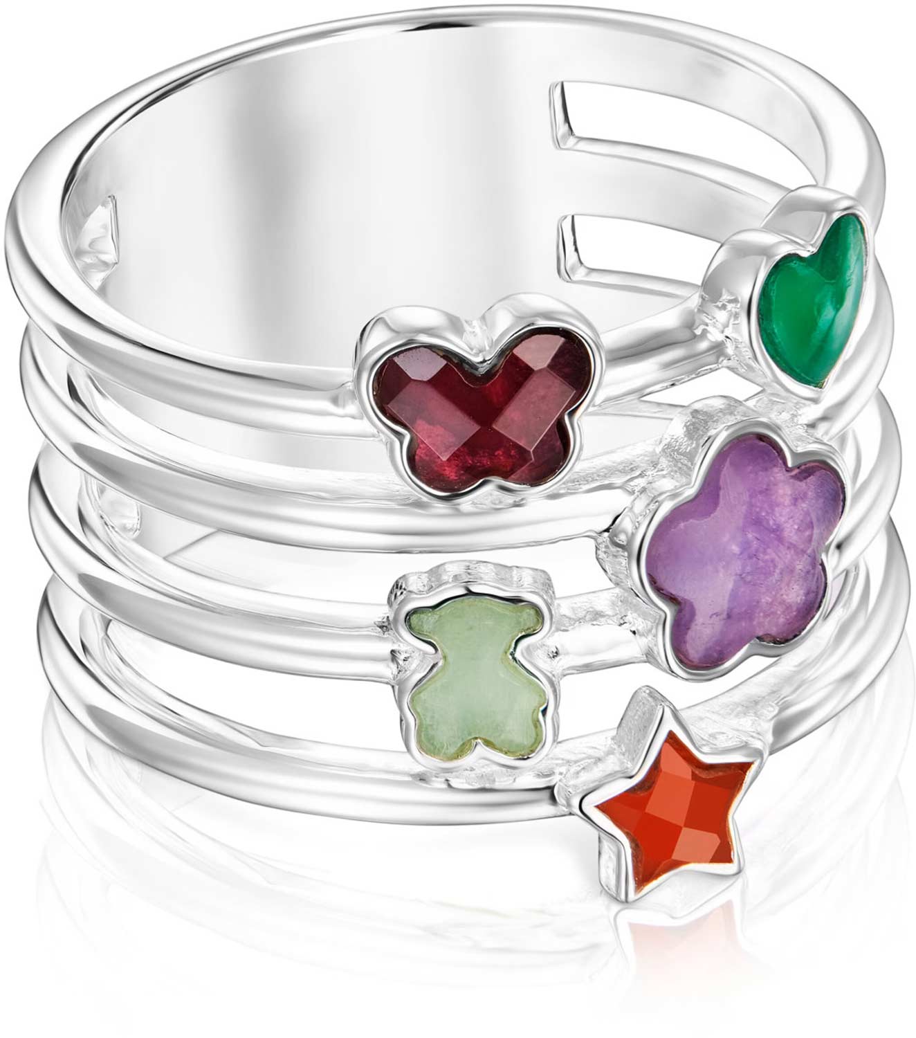 Серебряное наборное кольцо TOUS Motif 311655551 с аметистом, родолитом, сердоликом, халцедоном, амазонитом