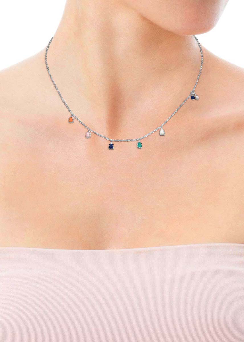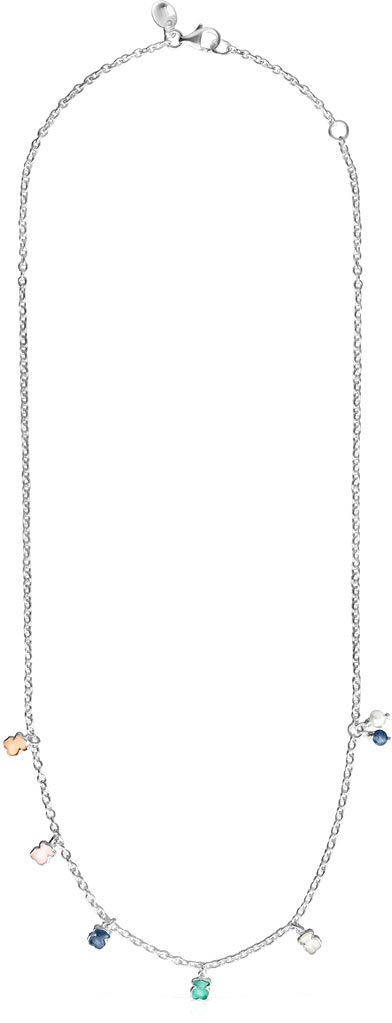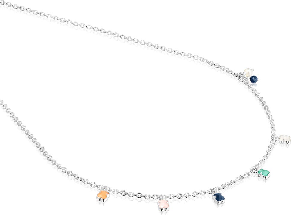 Ожерелье из серебра TOUS Mini Color 915432580 с жемчугом, перламутром, амазонитом, кварцем, дюмортьеритом, кварцитом