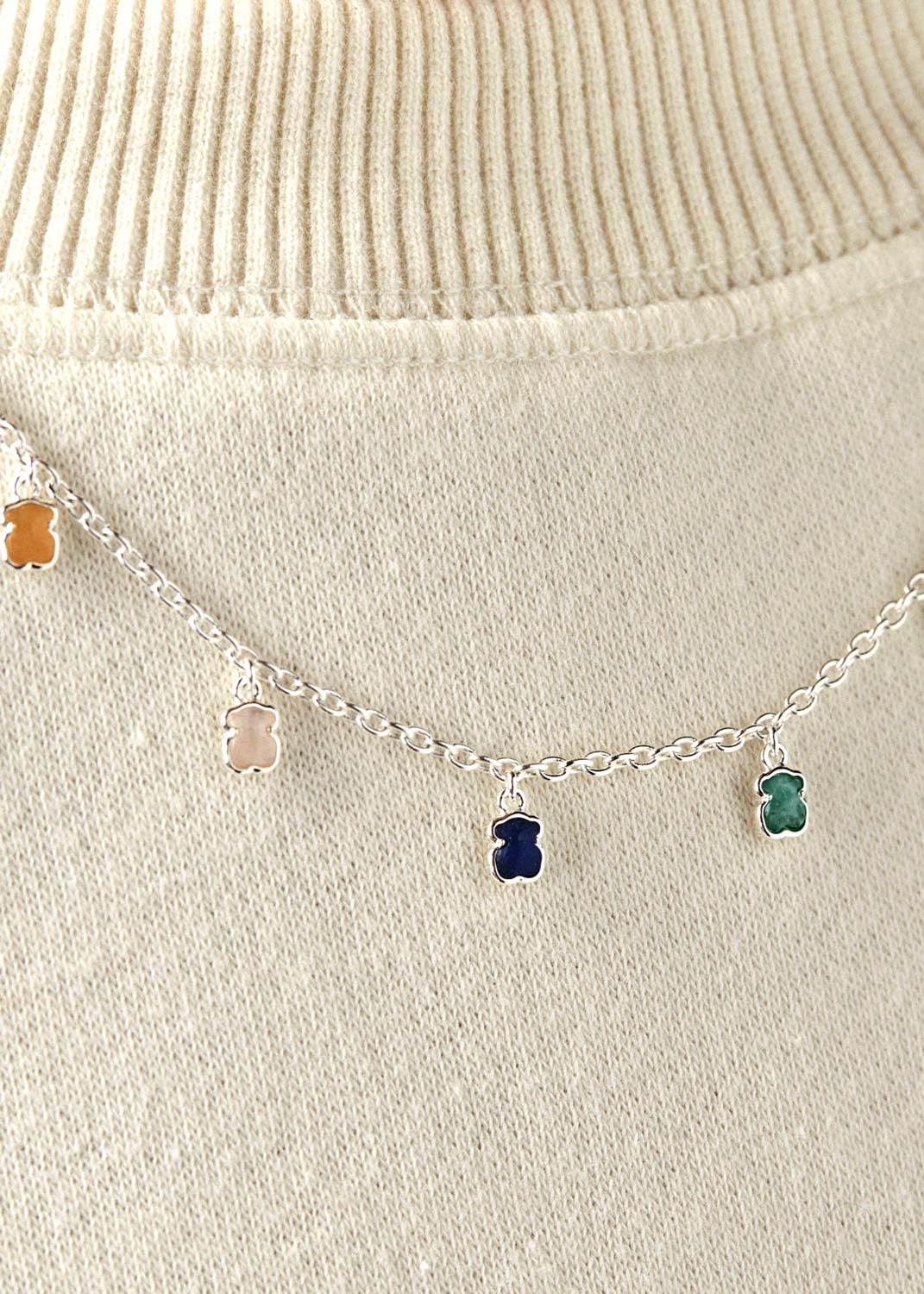 Фото «Ожерелье из серебра TOUS Mini Color 915432580 с жемчугом, перламутром, амазонитом, кварцем, дюмортьеритом, кварцитом»