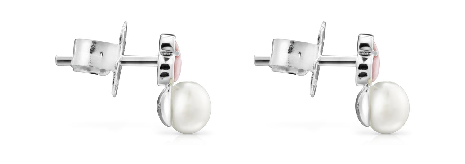 Фото «Серьги пусеты-гвоздики из серебра TOUS Mini Color 915433690 с кварцем, жемчугом»