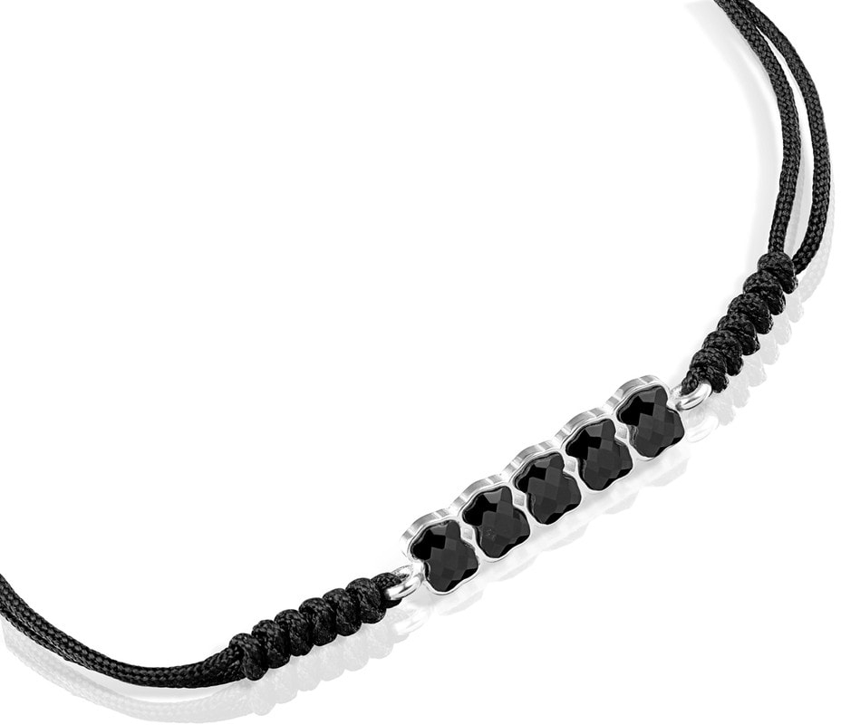 Браслет Mini Onix из серебра с ониксом на черном шнурке TOUS 918451540