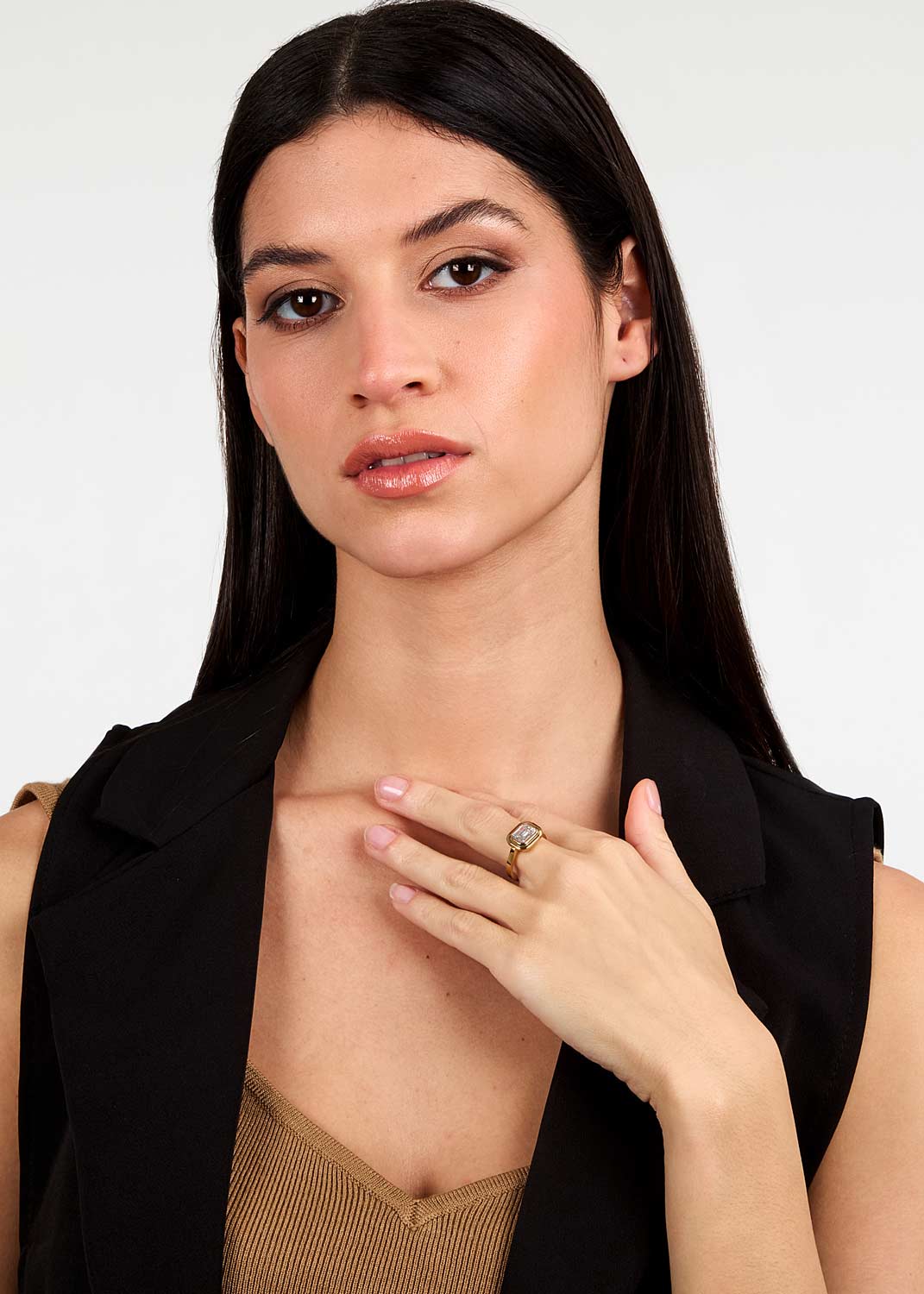 Фото «Женский стальной перстень Trussardi TJAXA29012 с кубическим цирконием»