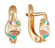 Детские золотые серьги ''Единорожки'' Veronika S101-2316M1 с эмалью