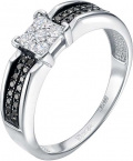 Фото «Кольцо из белого золота Vesna jewelry 12708-256-142-00 с черными бриллиантами, бриллиантами»