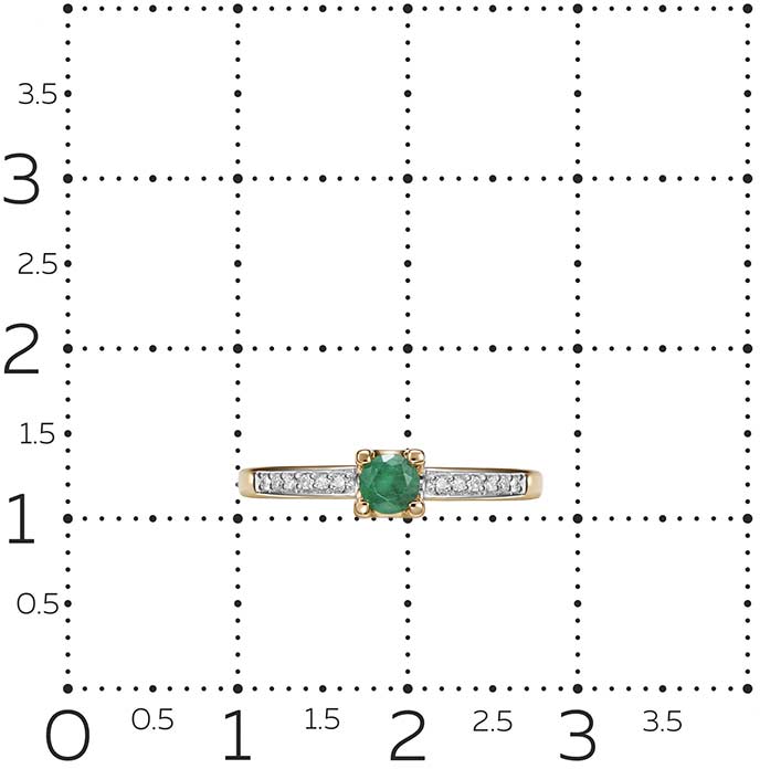- изумруд - 0,169К, чистота камня 3/3 (цвет, качество), бриллиант в 17 граней - 12шт. - 0,05К, чистота камня 2/2А (цвет, качество)
