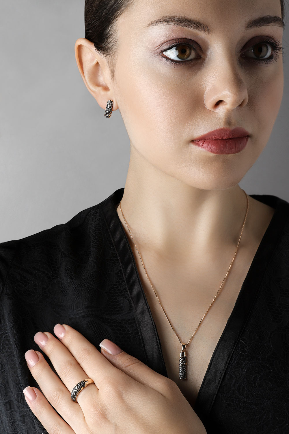 Фото «Золотые серьги Vesna jewelry 21146-156-178-00 с черными бриллиантами, коньячными бриллиантами, бриллиантами»
