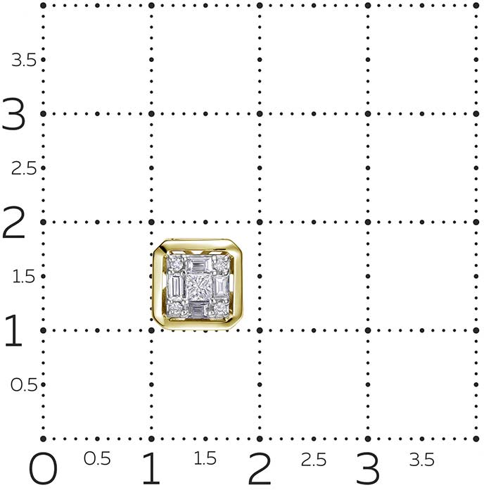 - бриллиант в 65 граней - 0,103К, чистота камня 3/6А (цвет, качество), бриллиант - 4шт. - 0,178К, чистота камня 3/6А (цвет, качество), бриллиант в 57 граней - 4шт. - 0,034К, чистота камня 3/6 (цвет, качество)