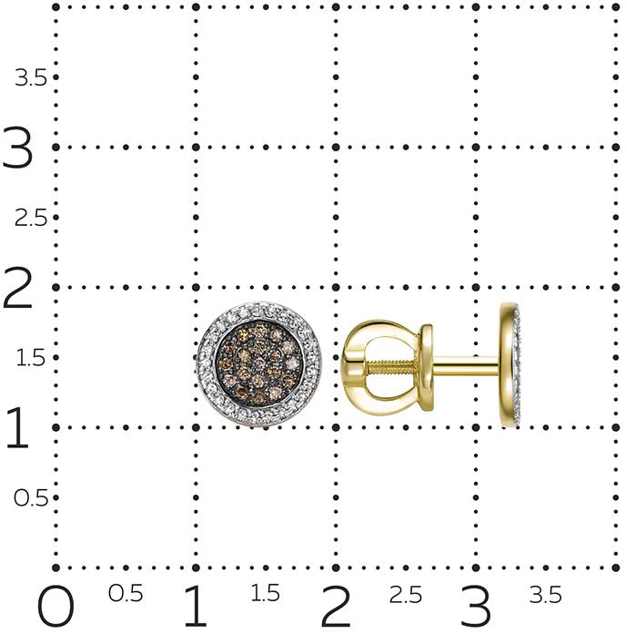 Фото «Золотые серьги пусеты-гвоздики Vesna jewelry 43512-356-176-00 с коньячными бриллиантами, бриллиантами»