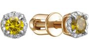 Фото «Золотые серьги пусеты-гвоздики Vesna jewelry 4409-151-260-00 с желтыми бриллиантами, бриллиантами»