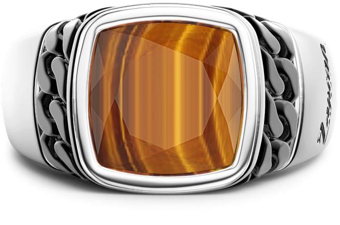 Фото «Мужская серебряная печатка перстень Zancan ESA003-T с тигровым глазом»