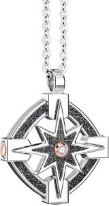 Мужская серебряная подвеска на цепочке ''Роза ветров'' Zancan ESC162R с золотом, бриллиантом, черными бриллиантами