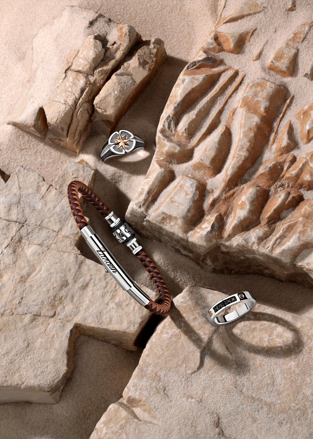 Мужское серебряное кольцо Zancan EXA010MR с золотом, черной шпинелью