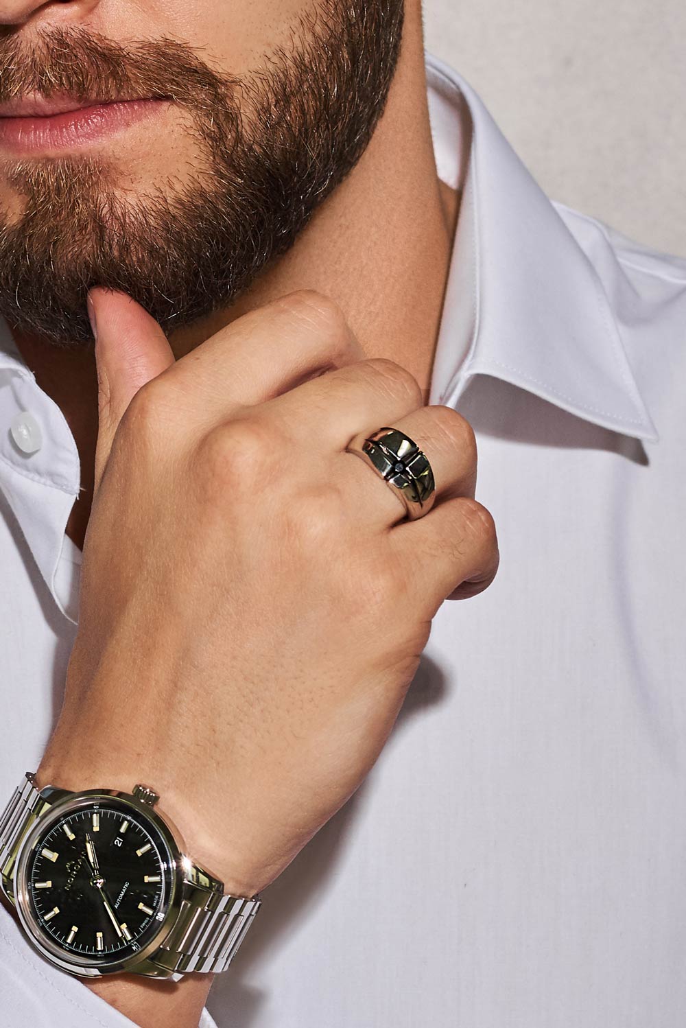 Фото «Мужская серебряная печатка перстень Zancan EXA164 с черной шпинелью»